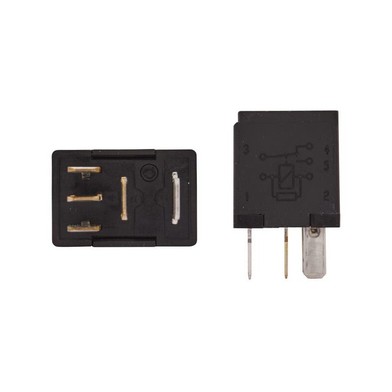 DetailsMain current relay Without holder Change relay With parallel resistance to coil 5 flat plug connections: 2 x 6.3mm and 3 x 4.8mm Power rating: 20/10 A at 12V