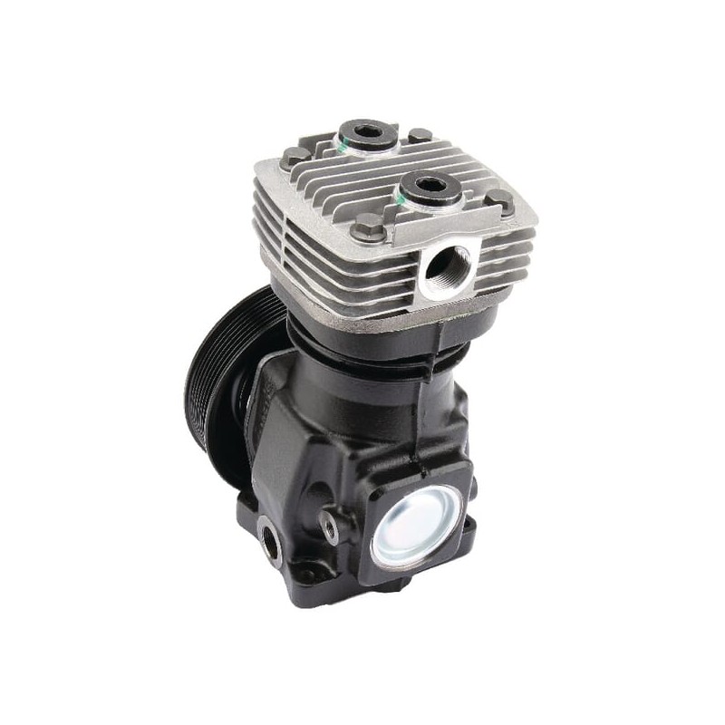 ProductomschrijvingApplication: Agricultural and forestry vehicles Consist of: With monoblock housing With lamellar valve Valve plate Air-cooled cylinder head Drive sealed with a shaft sealing ring Connecting rod with compound slide bearing Piston with piston rings Properties: Compressor designed as a single-stage piston compresso