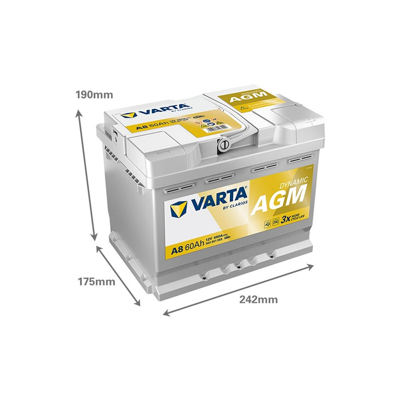 Akumuliatorius 12V 60Ah 680A A8 VARTA Dynamic AGM 560901068
