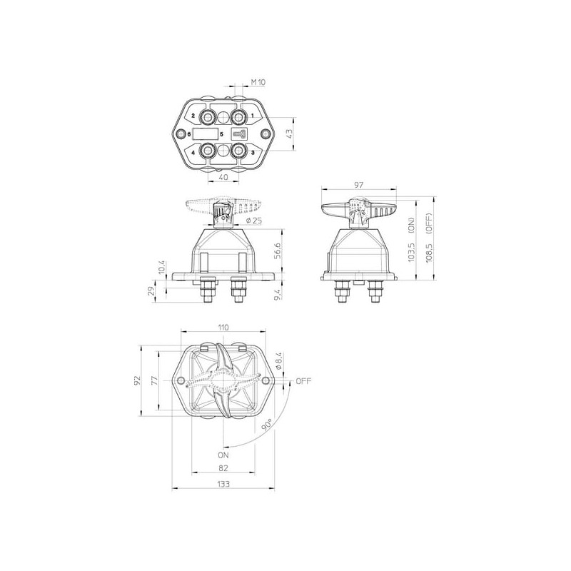 Didelis akumuliatoriaus pagrindinis jungiklis, dvigubas polius LA530110