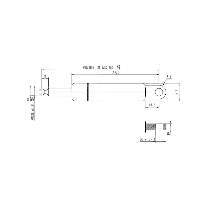Dujinis statramstis L257mm 280N Stabilus CA052507