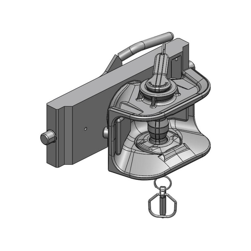 Techninė informacija Standžios priekabos sukabinimo įtaisas su horizontaliu skylių raštu 80 mm skylė 320 mm kaiščio tarpas Skirtas tvirtinti prie reguliuojamo aukščio atramos vokiško tipo