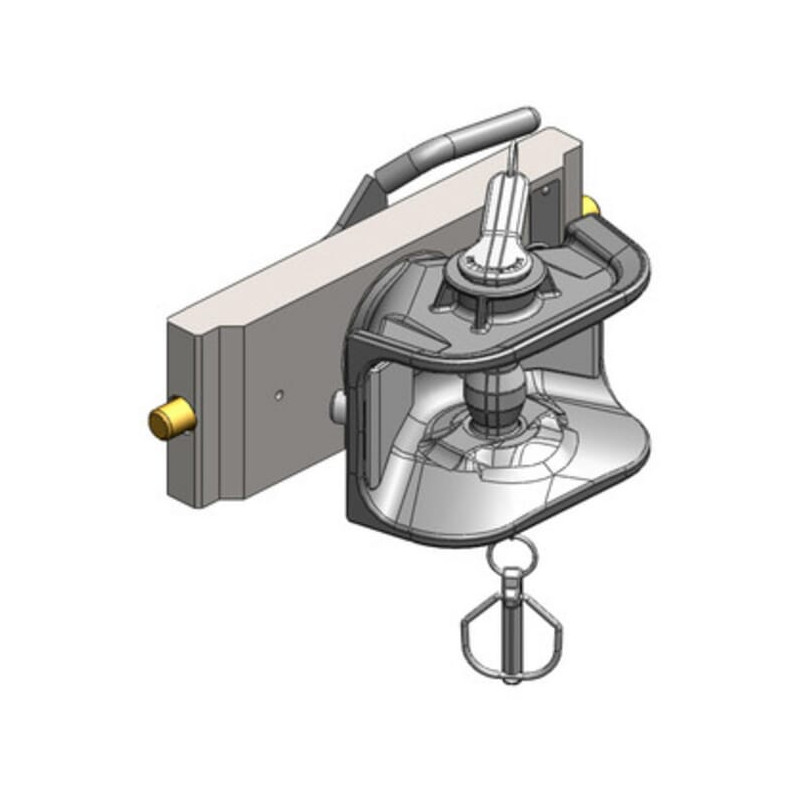 Techninė informacija Standžios priekabos sukabinimo įtaisas su horizontaliu skylių raštu 80 mm skylė 320 mm kaiščio tarpas Skirtas tvirtinti prie reguliuojamo aukščio atramos vokiško tipo