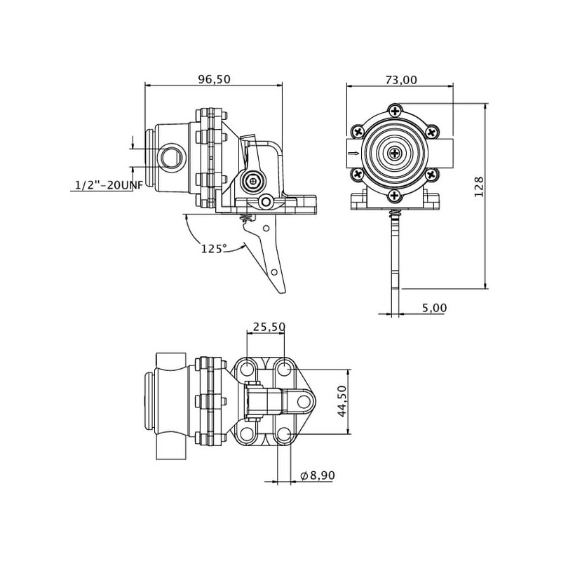 Įsiurbimo pusės jungties sriegio tipasUNF