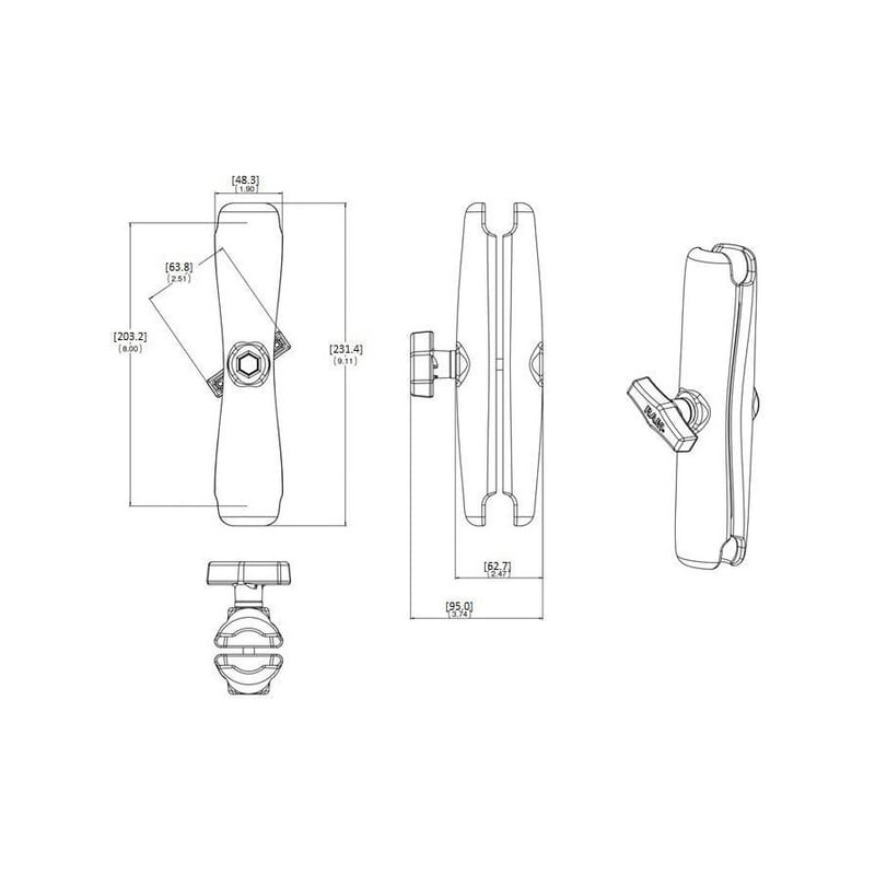 Informacija apie gaminįRAM C rutulio skersmuo: 1,5 colio (38,1 mm) Didžiausia leistina apkrova: 2,5 kg Tvirtai dėvimos aliuminio dalys RAM Laikikliai, pagaminti iš aliuminio lydinio, turi gaminio tipo žymėjimą, prasidedantį RAM (M reiškia "Metal"),