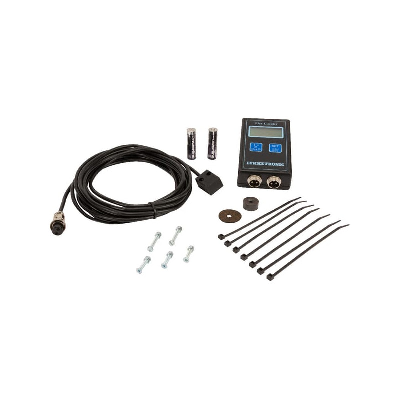 Techninė informacijaPavadinimas rodo, kad Flex skaitiklis naudojamas įvairiems tikslams. Jį lengva montuoti, nes maitinimo laido nereikia, nes „Flex Counter“ yra varomas akumuliatoriumi. Monitorius montuojamas salone su komplektacijomis. Pridedamos magnetų ir jutiklių montavimo instrukcijos. Funkcijos: Matuoja greitį Dalinis ir bendras plotas Vieneto skaitiklis Apsisukimų skaitiklis ir sukimosi laikas Darbo valandos Apvyniojimo skaitiklis su aliarmu Flex skaitiklis tuo metu matuoja tik vieną iš aukščiau nurodytų funkcijų. Jei vienu metu reikia stebėti daugiau funkcijų; rekomenduojame PX Combi 800 seriją. Techninės specifikacijos: Dydis: 114 x 72 x 33 mm Svoris: 150 gramų Ekranas: 4 skaitmenys Baterijos: 2 x 1,5 V (AA) 001-2-0001 Flex skaitiklį sudaro: 1 monitorius su garsu 1 vnt. montavimo komplektas monitoriui 1 vnt. nendrinis jutiklis su 5,0 m kabeliu 2 vnt. baterijos 1,5 V (AA) 1 montavimo rinkinys jutikliui/magnetui