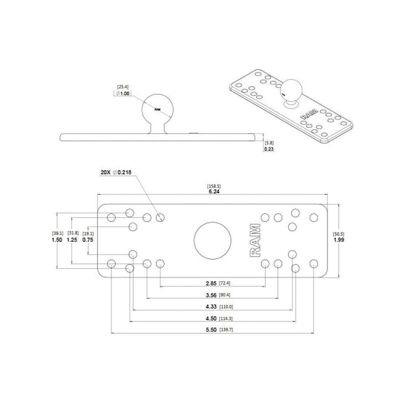 Išsami informacija apie gaminį RAM B rutulio skersmuo: 1'' (25,4 mm) Didžiausia leistina apkrova: 1,5 kg Tvirtai susidėvėjusios dengtos aliuminio dalys.