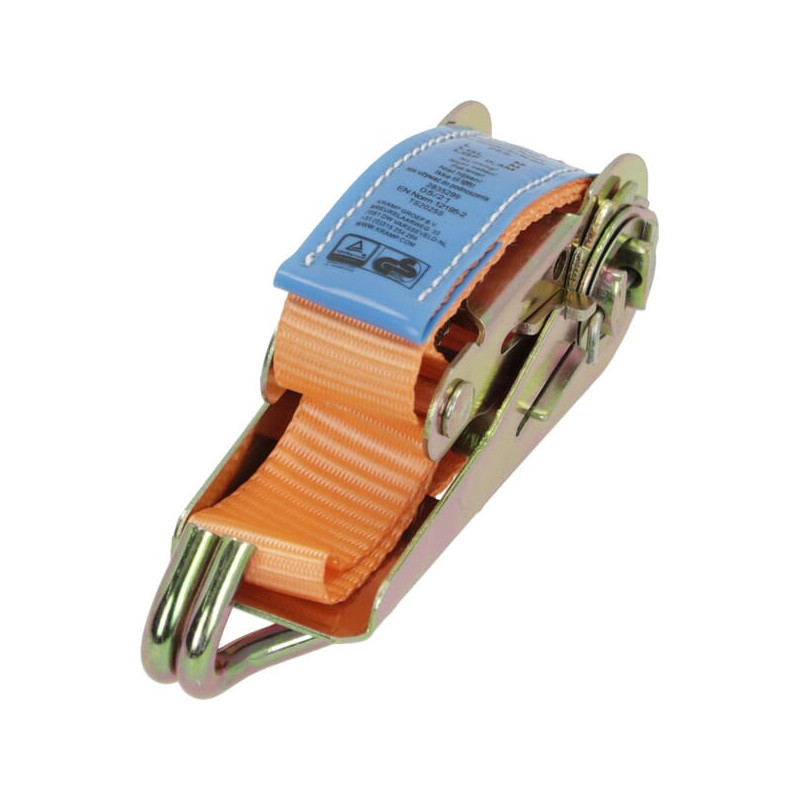 Išsami informacija apie gaminį Tvirtinimo galia įtempiant tiesią liniją arba surišimo galia surišant pagal EN 12195-2 Niekada nenaudokite tvirtinimo diržų kėlimui Pritvirtinkite tvirtinimo diržus taip, kad diržas nesisuktų Niekada nedėkite apkrovos ant kabliukų taško. šarminėje aplinkoje naudokite poliesterio tvirtinimo diržus