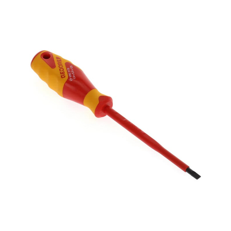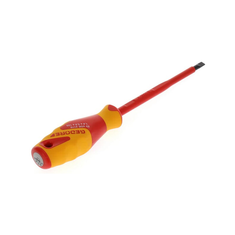 Dalies numeris VDE217055 EAN4010886826041 Vnt./vnt. Gamintojas Gedore Savybės VDE izoliuotas iki 1000 V, pagal EN 60900/IEC 60900:2004; Visiškai izoliuotas peilis. Pjovimo briauna pagal DIN ISO 2380-1 A formą. Su smūgiams atsparia rankena. Profilio tipas: Įpjova. Peilio plotis: 5,5 mm. Peilio/antgalio storis: 1 mm. Izoliacijos apsauga: 1000 V. Taip. Ilgis be rankenos: 125 mm. Bendras ilgis: 225 mm. Peilio ilgis: 125 mm. Šerdies profilio forma: Apvali. Šerdies tipas: Izoliuota. Tikslus modelis: Ne. Modelis: Tiesus. Izoliuota. Ne. Rankenos tipas: Apvali. Rankenos medžiaga: Plastikas. Kvadratinė pavara / šešiakampė pavara. Nėra. Mažo kibirkšties susidarymo modelis: Taip. Antimagnetinis. Ne. Išsipūtęs peilis. Ne. Veleno tipas: Apvalus. Su apsauga nuo riedėjimo. Taip. Pasukamas dangtelis: Taip. Smūginis dangtelis: Ne. Peilio medžiaga: Molibdeno vanadžio plienas. Ištisinis peilis: Ne. ISO standartas: 2380. DIN standartas: 2380-1, 2380-2. EN standartas: 60900. Svoris: 82 g. Gamintojas: Produktas. ID1612271 [ ]