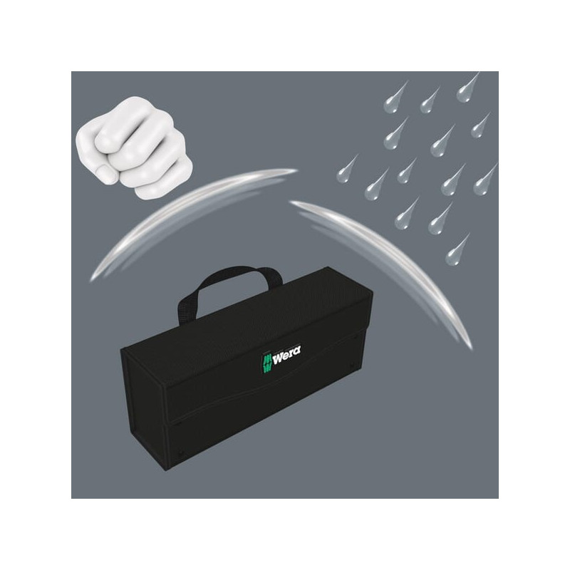 Dalies numeris 05004352001 EAN4013288187369 Vnt. vnt. Gamintojas Wera Išsamus aprašymas Kompaktiška ir tvirta Wera 2go įrankių dėžė, pagaminta iš patvarių ir matmenų požiūriu stabilių medžiagų, gali būti pripildyta įrankiais ir atsarginėmis dalimis. PrivalumaiLabai aukšta transportuojamų įrankių apsauga nuo pažeidimų ir drėgmėsTvirtas ir matmenų požiūriu stabilus dėl audiniu dengtų plastikinių lakštųItin atsparus įpjovimams ir dūriams