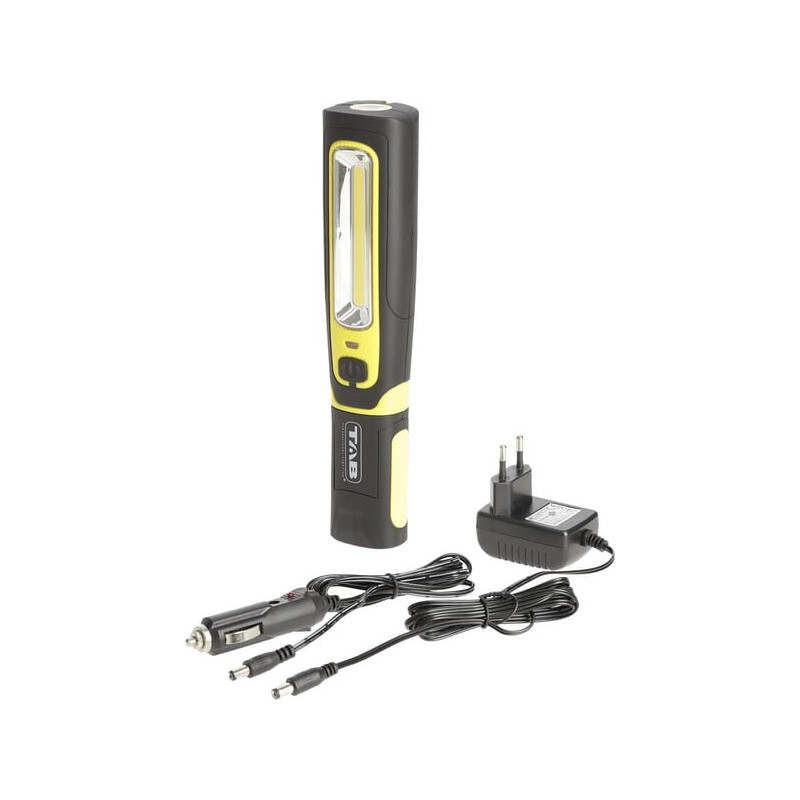 VienetasKiekvienas Prekės ženklasTAB Produkto informacijaĮkraunamas apžiūros žibintas su 6 W COB-LED (300–600 LM) ir 3 W Power-LED žibintuvėliu (160 LM) galvutėje. Žibintą galima naudoti įvairiose padėtyse (žibintuvėlis sukasi 360°, pagrindas pasukamas 2 x 90°) ir be rankų magnetų bei 360° pasukamo pakabinimo kablio pagalba. Smūgiams atsparus, guma dengtas ABS korpusas ir plieninis pakabinimo kablys. Įrengtas akumuliatoriaus indikatorius.