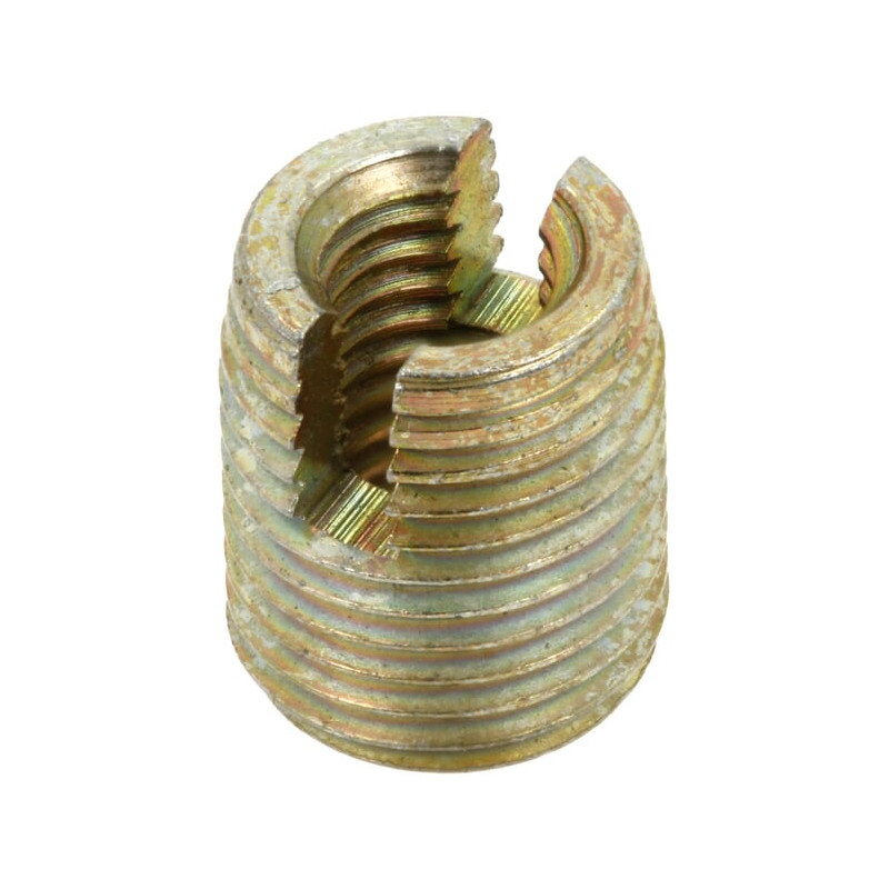 Produkto informacija: Savisriegė srieginė įvorė su išoriniu ir vidiniu sriegiu bei išpjautomis skylėmis. Vidinis, standartinis metrinis vidinis sriegis. Išorinis, specialus išorinis išorinis sriegis. Metalui, lydiniams, ketui, žalvariui, bronzai ir spalvotiesiems metalams. Plastikui ir laminatui. Kietmedžiui.