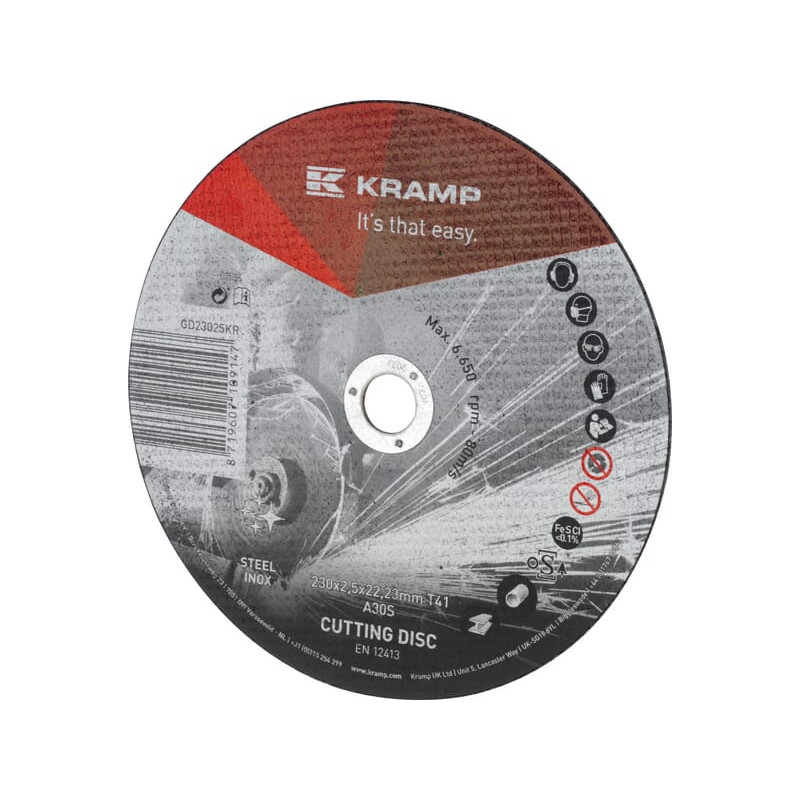 Dalies numerisGD23025KR EAN Vnt.Kiekvienas GamintojasKramp Išsamus aprašymas Aukštos kokybės Kramp pjovimo diskai, tinkami naudoti su plienu ir nerūdijančiu plienu, atitinka profesionalų reikalavimus. Skirti sudėtingiems šlifavimo darbams metalo pramonėje ir amatininkystėje. Privalumai Mūsų naujausias Kramp pjovimo diskų asortimentas; dar daugiau! Ilgas tarnavimo laikas, sujungtas su dideliu efektyvumu; gali visiškai patenkinti aukštus profesionalių naudotojų poreikius Produkto informacija Efektyvumas padidėja dėl didesnio apdirbimo ir ilgesnio veikimo laiko Puikiai tinka plienui, konstrukciniam plienui, nerūdijančiam plienui, INOX ir legiruoto plieno paviršiams Puikiai tinka naudoti su mažai legiruoto plieno paviršiais ir ketumi Atitinka OSA saugos reglamentus ir Europos saugos standartą EN 12413 Disko skersmuo 230 mm Disko tvirtinimo angos skersmuo 22,23 mm Storis 2,5 mm Sukurta medžiagai Plienas Nerūdijantis plienas Forma Plokščia Formos kodas 41 Maksimalus sukimosi greitis 6650 aps./min. Maksimalus sukimosi greitis 80 m/s Parduodamo vieneto turinys 25 vnt.