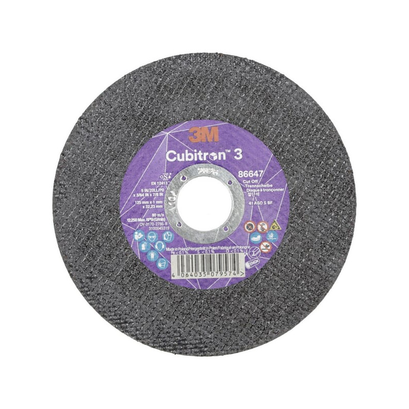 Dalies numeris86647 EAN04064035079574 VienetasKiekvienas Gamintojas3M Išsamus aprašymas. 3M™ Cubitron™ 3 šlifavimo diskas atlieka statmenus pjūvius išoriniu disko kraštu, todėl idealiai tinka pjauti metalą, įskaitant automobilių kėbulų ar laivų lakštinį metalą, nerūdijančio plieno vamzdžius, išmetimo vamzdžius, spaustukus, surūdijusius tvirtinimo elementus. PrivalumaiDidesnis greitis, iki 10 % didesnis pjovimo greitis, palyginti su 3M™ Cubitron™ II Performance abrazyvais, todėl darbui reikia mažiau laiko ir slėgio.Mažiau keitimų, pašalina iki trijų kartų daugiau medžiagos nei 3M™ Cubitron™ II Performance abrazyvai.