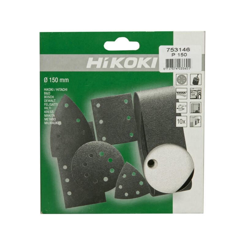 Dalies numeris 753146 EAN8717574033601 Vieneto pakuotė Gamintojas HiKOKI Disko skersmuo 150 mm Grūdėtumo kodas 150 Parduodamo vieneto turinys 10 vnt.