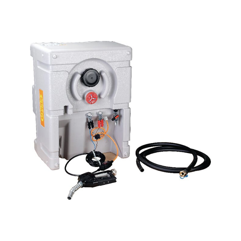 Sudėtis: Bakas Automatinis benzino siurblio antgalis Sumontuotas siurblys Uždarymo vožtuvas Išleidimo žarna, 4 m, DN 19, sriegis 1 colio A, sriegis 1 colio I Lipnios etiketės dyzelinui Spyna nepridedama Naudojimo instrukcijos keliomis kalbomis