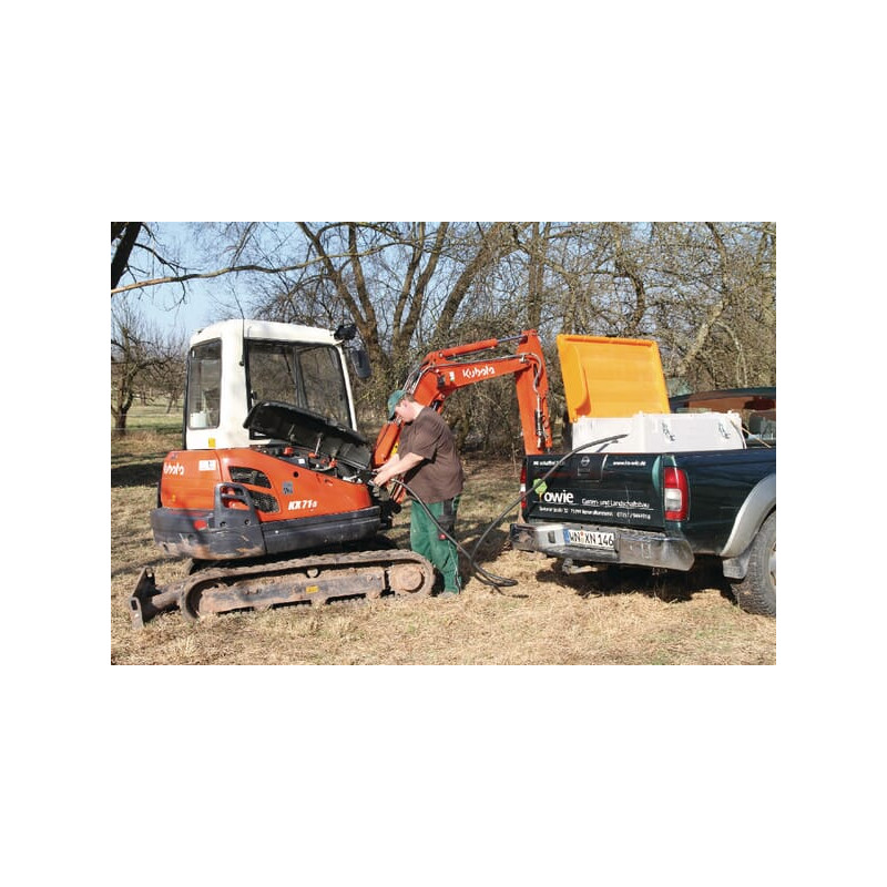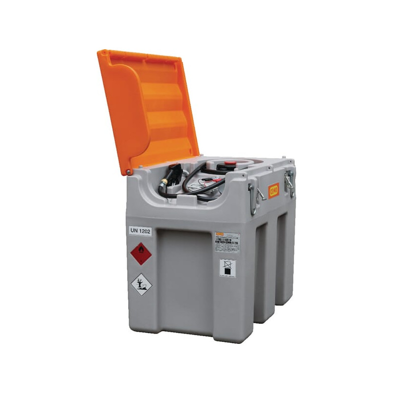 Sudėtis: Bakas, Automatinis benzino pompos antgalis, Montuojamas pompa, Uždarymo vožtuvas. Išleidimo žarna, 4 m, DN 19, sriegis 1" a, sriegis 1" i. Lipnios etiketės dyzelinui: Spyna nepridedama. Naudojimo instrukcijos keliomis kalbomis.