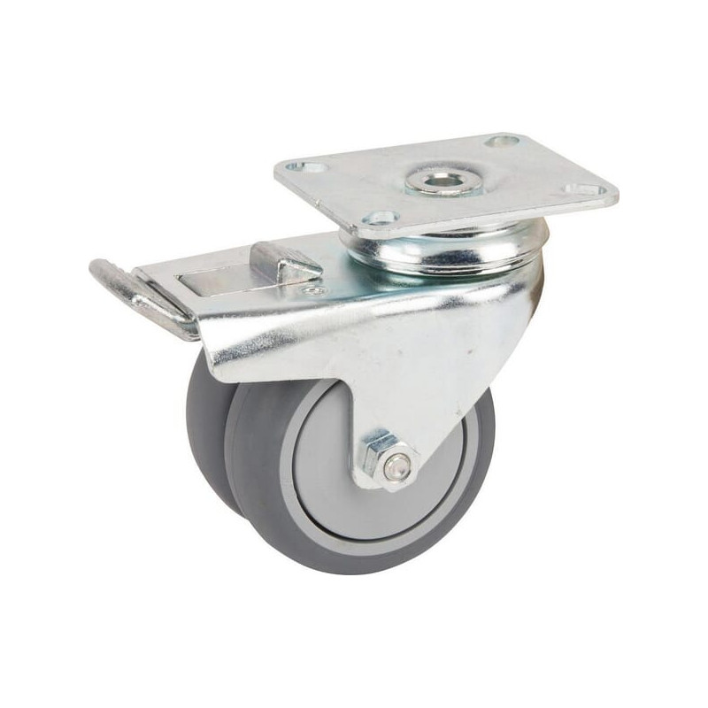 Pasukamas ratukas, guminis ratas: Ø75x25mm, su stabdžiu, plokštelės tvirtinimas: 77x67mm, apkrova: 100kg, Tente 2977PJP075P50