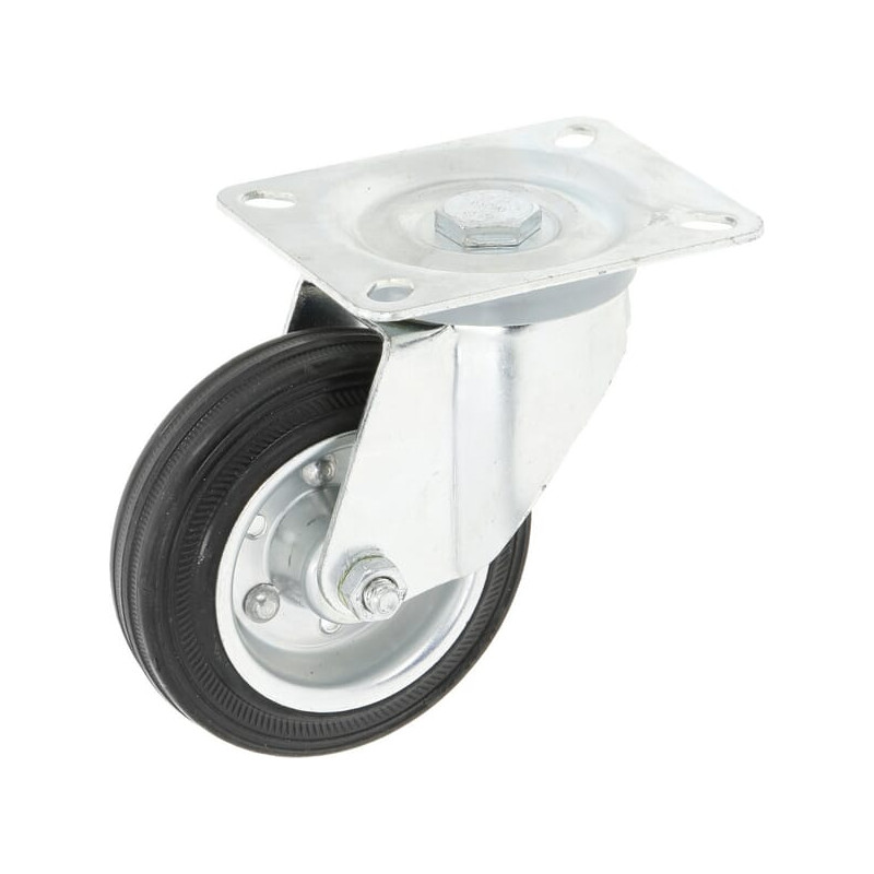 Išsamus aprašymasRatukai su tvirta juoda gumine padanga. Ratuko šerdis pagaminta iš presuoto plieno lakšto ir su ritininiu guoliu, šie ratukai tinka vidutinio svorio kroviniams.
