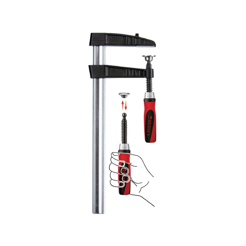 Produkto informacija Prispaudimo jėga iki 7000 N Sustiprinta konstrukcija, užtikrinanti didesnę prispaudimo jėgą ir platesnį angos plotį Aukštos kokybės dviejų komponentų plastikinė rankena Prispaudimo plokšteles galima pakeisti rankomis – nereikia jokių įrankių Stabilus profiliuotas bėgelis su dantyta BESSEY neslystančia sistema Prispaudimo pločio diapazonas 0–1250 mm Prispaudimo gylis 120 mm Slankiojo bėgelio plotis 35 mm Slankiojo bėgelio storis 11 mm Maksimali prispaudimo jėga 7000 N Svoris 4480 g