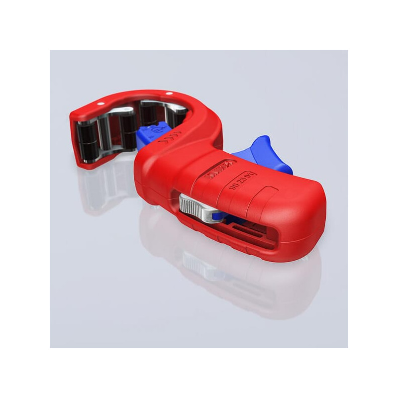 Dalies numerisTA902301BK EAN4003773087809 Vnt./vnt. GamintojasKnipex Išsamus aprašymas KNIPEX DP50 yra vamzdžių pjaustyklė plastikiniams išleidimo vamzdžiams. Vienas įrankis su dviem funkcijomis ir trimis skersmenimis lengvai ir tvarkingai pjauna įprastus plastikinius vamzdžius. PrivalumaiPuikus santechnikos įrankis, patogiai pjauna ir nusklembia visus įprastus plastikinius vamzdžius iki Ø50 mm vienu ypu. Apverčiamas peilis, pagamintas iš aukštos kokybės grūdinto plieno, kurį galima keisti be įrankių. Švarus pjovimas, nereikia reguliuoti, nereikia šalinti šerpetų, mažesnė užsikimšimo ar sandariklio pažeidimo tikimybė.