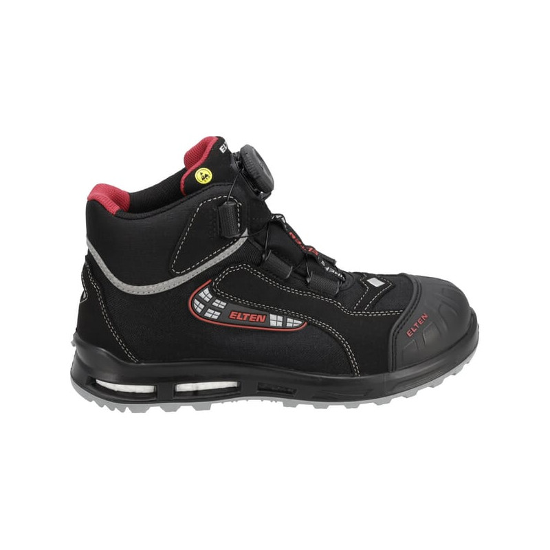 Produkto informacijaHidrofobizuota mikropluošto / hidrofobizuota tekstilės medžiaga CORDURA® Audinio pamušalas natūraliai ventiliacijai Pilnas, paminkštintas liežuvėlio įdėklas Viso ilgio įdėklas Padas ESD PRO juodas Nemetalinis, atsparus įsiskverbimui vidpadis PU/PU padas WELLMAXX SPORTBAČIAI TPU apsauga nuo įbrėžimų Kompozitinė pirštų apsauga EN ISO 20345 S3 SRC, B forma BOA® tvirtinimo sistema Be odos, pado šerdis pagaminta iš „Infinergy®“ (BASF)