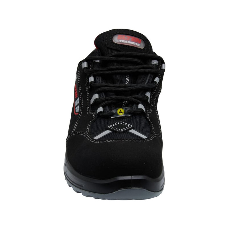 Produkto informacijaHidrofobizuota mikropluošto / hidrofobizuota tekstilės medžiaga CORDURA® Audinio pamušalas natūraliai ventiliacijai Pilnas, paminkštintas liežuvėlis Viso ilgio įdėklas Padas ESD PRO juodas Nemetalinis, atsparus prasiskverbimui vidpadis PU/PU padas WELLMAXX SPORTBAČIAI Pirštų apsauga pagaminta iš kompozito EN ISO 20345 S3 SRC, A forma Be metalo ir odos dizainas, Pado šerdis pagaminta iš „Infinergy®“ (BASF)