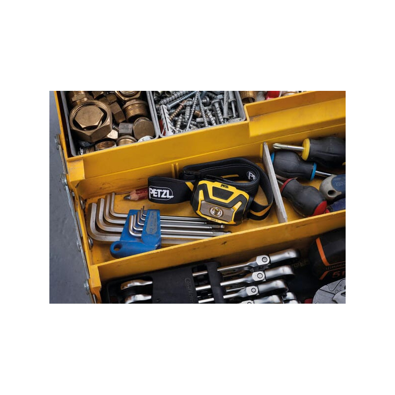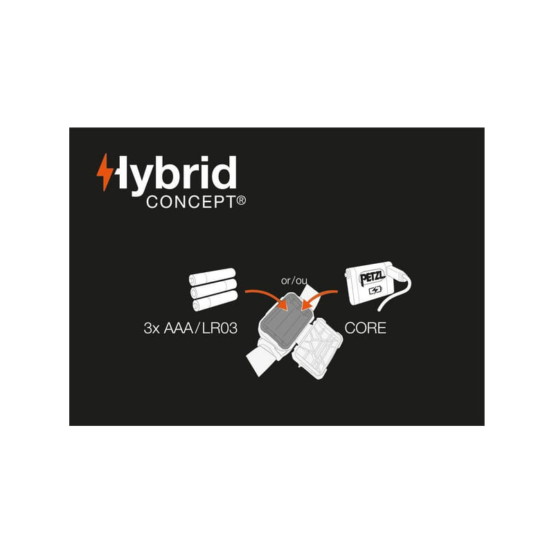PrivalumaiStandartiškai tiekiamas su baterijomis, tačiau jį galima išplėsti naudojant „Petzl Core“ bateriją. Galima pritvirtinti prie „Petzl“ pramoninių šalmų naudojant atskirai įsigyjamą šalmo laikiklį.