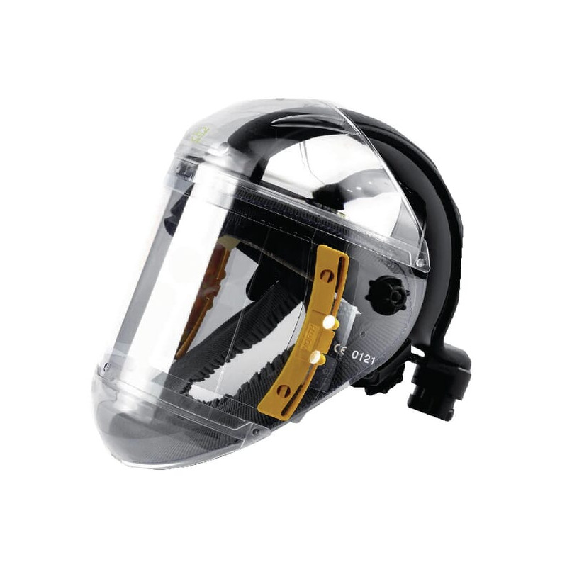 PrivalumaiDidelis, ryškus skydelis suteikia pakankamai šviesos ir platų matymo laukąVisa veido apsauga (įskaitant smakro ir antakių apsaugas)Minkštas, elastingas ir plaunamas veido sandariklisVienkartiniai skydeliai tvirtinami ant pagrindinio skydelio, kad būtų išvengta pažeidimųUnikali sistema su spyruokliniais spaustukais vienkartiniams skydeliams