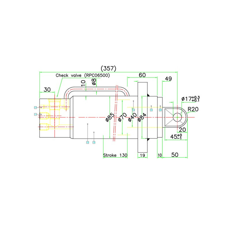 Atstumas nuo cilindro galo iki strypo galo377 mm