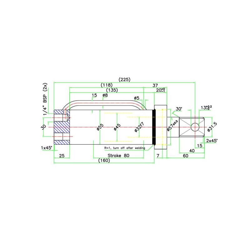 Atstumas nuo cilindro galo iki strypo galo240 mm