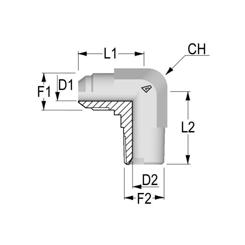 90° alkūnė MJ9/16-MNPT1/8 KIN0902