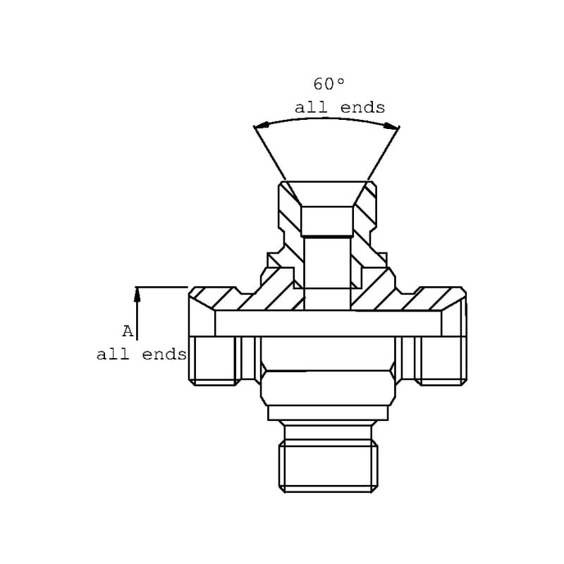 4 jungtis, sriegis skersmuo 1/4 colio