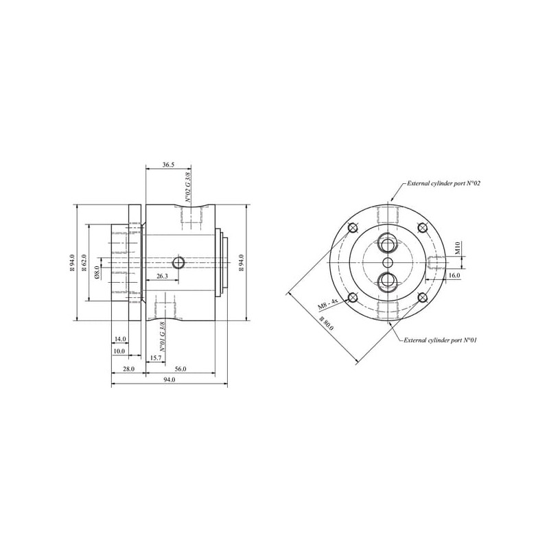 2 jungtis, sriegio skersmuo3/8 colio