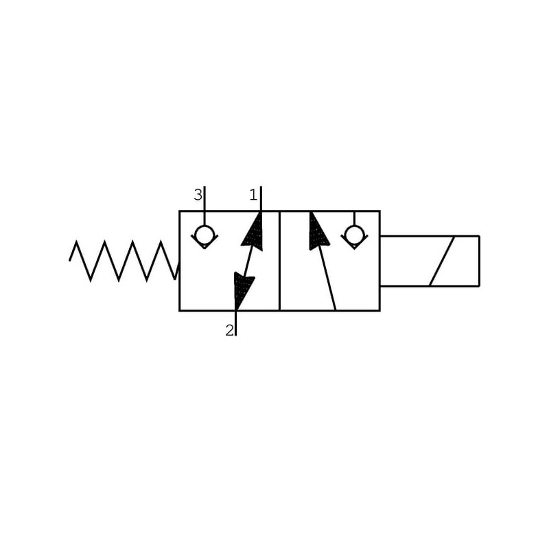 Išsamus aprašymasŠis tiesiogiai valdomas 3/2 vožtuvas jungia 1 prievadą su 2 išvadu. Aktyvioje būsenoje 1 įvadas yra sujungtas su 3 išvadu. Vožtuvas turi dvi srauto kryptis.