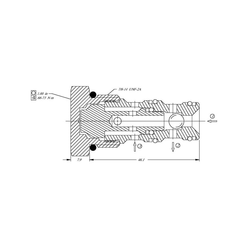 Techninė informacijaŠis perjungimo vožtuvas nukreipia vieną iš dviejų įeinančių alyvos srautų (1 ir 2), kurių slėgis yra didžiausias, į išeinantį kanalą (3). Vožtuvas turi neapkrautą rutulį (nėra atidarymo slėgio).