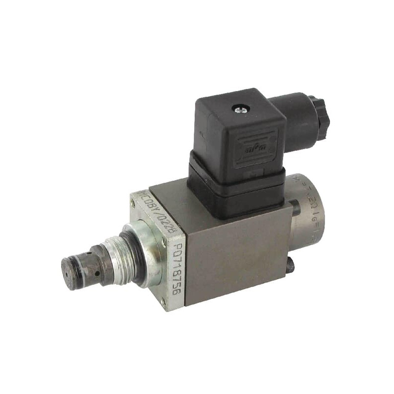 Produkto informacijaTiesioginis veikimasPerjungimai iš 1 į 2 prievadąLėkštinio tipo Solenoidinis proporcinis Didėjantis slėgis didėjant srovei (NO) Valdymas 12 arba 24 V nuolatinės srovės rite Kaip proporcinis išankstinis valdymas apkrovos jutimo sistemoje esant mažam tūrio srautui ir aukštam slėgiui 3 jungtis turi būti prijungta prie bako be slėgio Kaip siurblio ir variklio apsauga arba kaip smūginis vožtuvas esant vidutinio tūrio srautui ir vidutiniam slėgiui