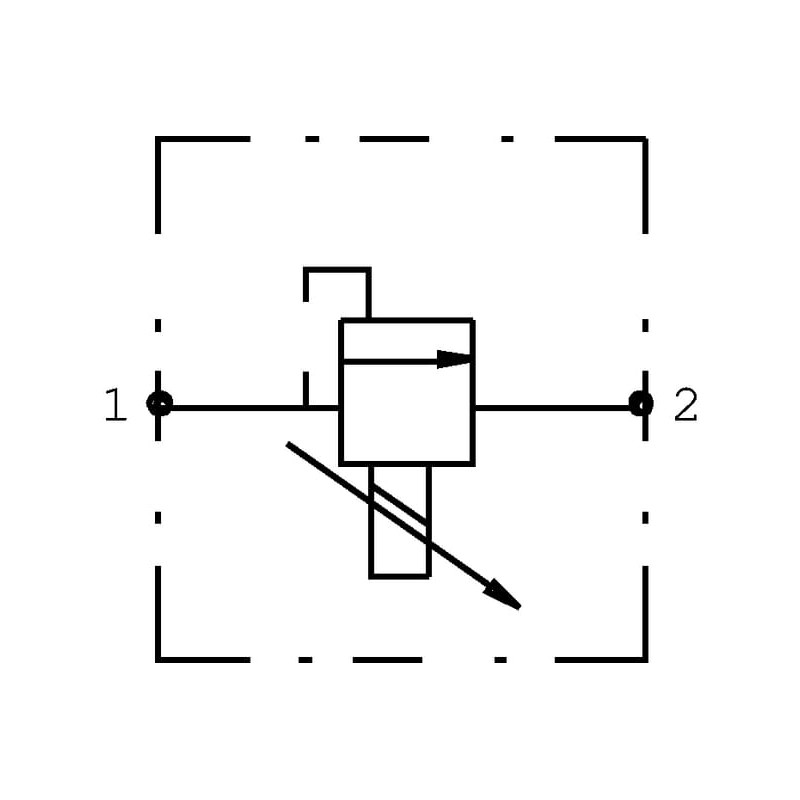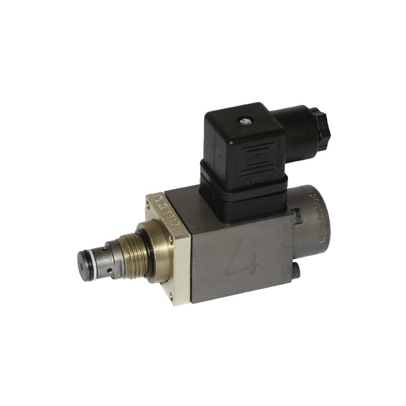 Produkto informacijaTiesioginis veikimasPerjungimai iš 1 į 2 prievadąLėkštinio tipo Solenoidinis proporcinis Didėjantis slėgis didėjant srovei (NO) Valdymas 12 arba 24 V nuolatinės srovės rite Kaip proporcinis išankstinis valdymas apkrovos jutimo sistemoje esant mažam tūrio srautui ir aukštam slėgiui 3 jungtis turi būti prijungta prie bako be slėgio Kaip siurblio ir variklio apsauga arba kaip smūginis vožtuvas esant vidutinio tūrio srautui ir vidutiniam slėgiui