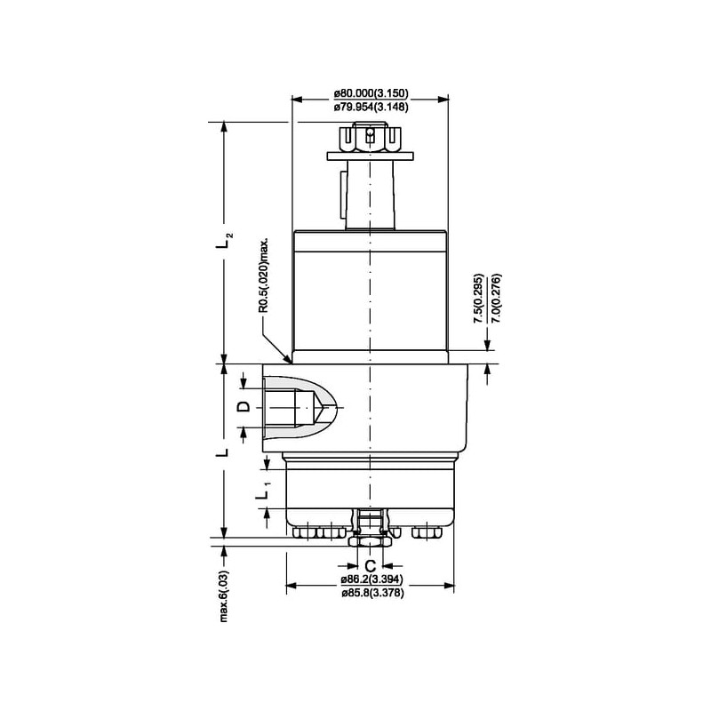 C Išleidimo angos sriegio skersmuo 1/4 colio