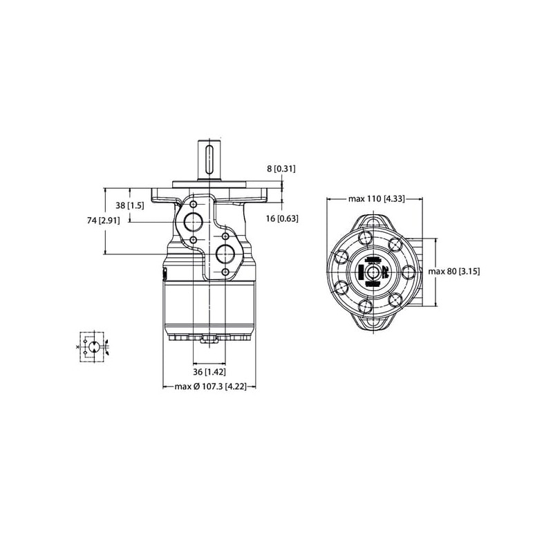 Techninė informacijaSu alyvos nuotėkio išleidimo anga Ritininė konstrukcija Platus veleno slydimo guolis Galima jungti nuosekliai su kitais varikliais Tinka naudoti uždarose sistemose Priklauso vidutinio dydžio orbitinių variklių serijai