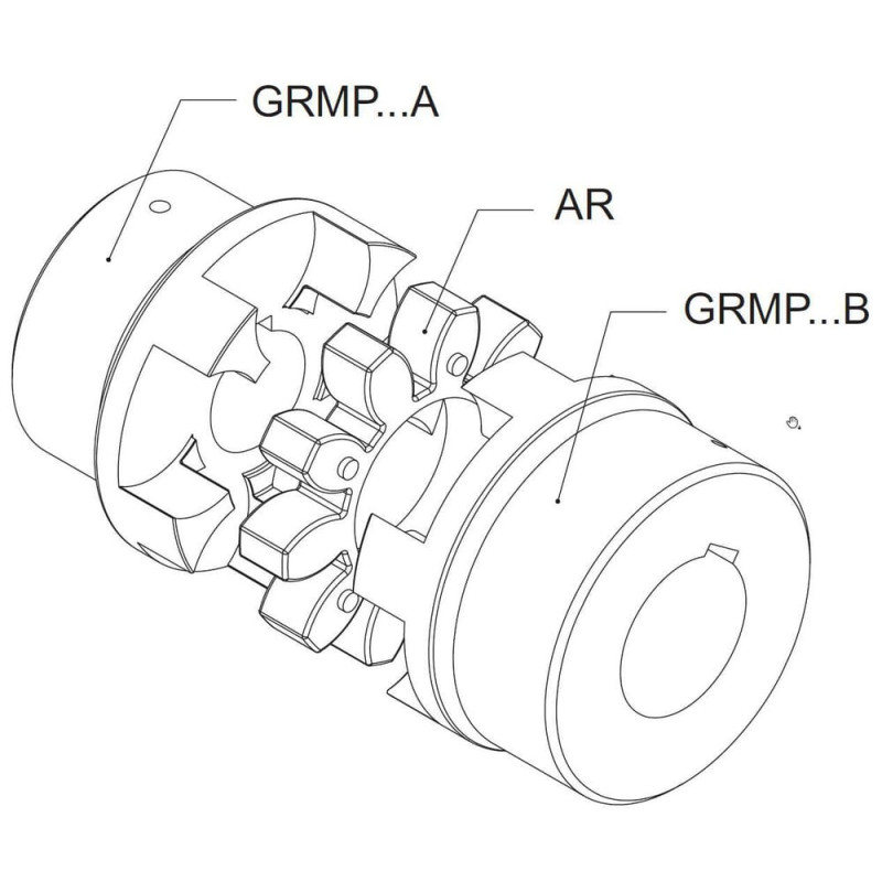 Techninė informacijaStebulės kiaurymė, išpjova pleištui ir srieginė skylė yra neprivalomi Galima įsigyti pagal ATEX gaminių direktyvą 94/9/EB Visą jungtį sudaro 2 GRMB..B1/GRMB..B2 tipo pusės ir 1 plastikinė žvaigždutė Galima pakeisti „Rotex“ (KTR); „Spidex RaJa“; „MultiMont Astra“ (Reich); „Trasco“ (SIT) ir „Giflex“ (Chiaravalli)