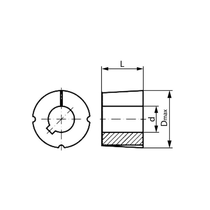 Sudėtyje yra:Kūginė fiksavimo įvorė2 išspaudžiamieji varžtai (tipo Nr. 1108INB14)
