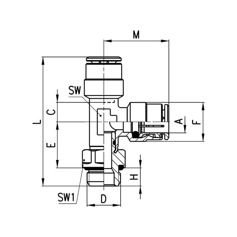 SW2 jungtis, veržliarakčio dydis8,0 mm