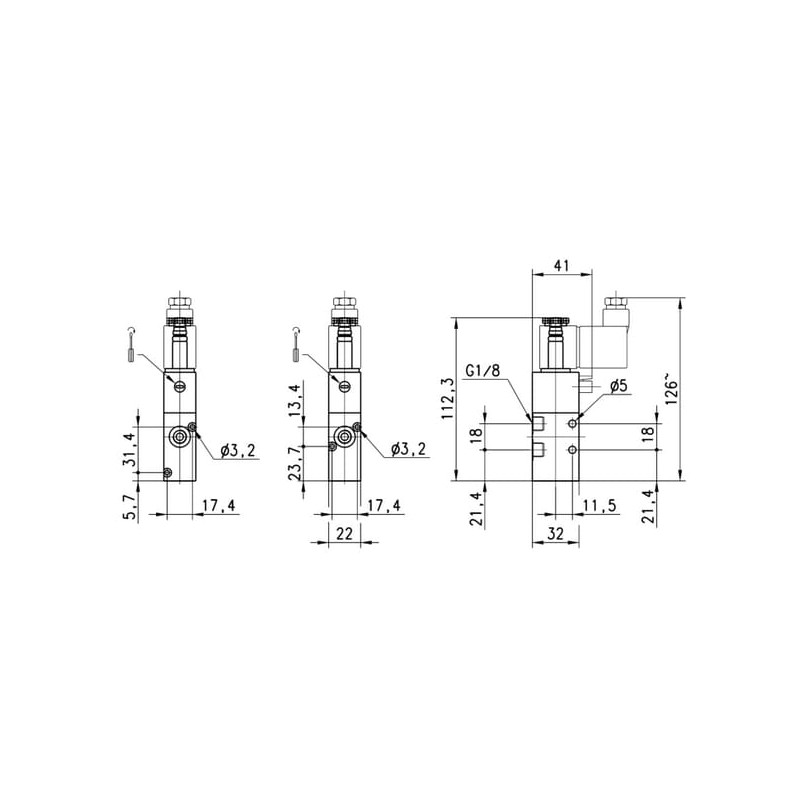Vožtuvo tipas 3/2 NO