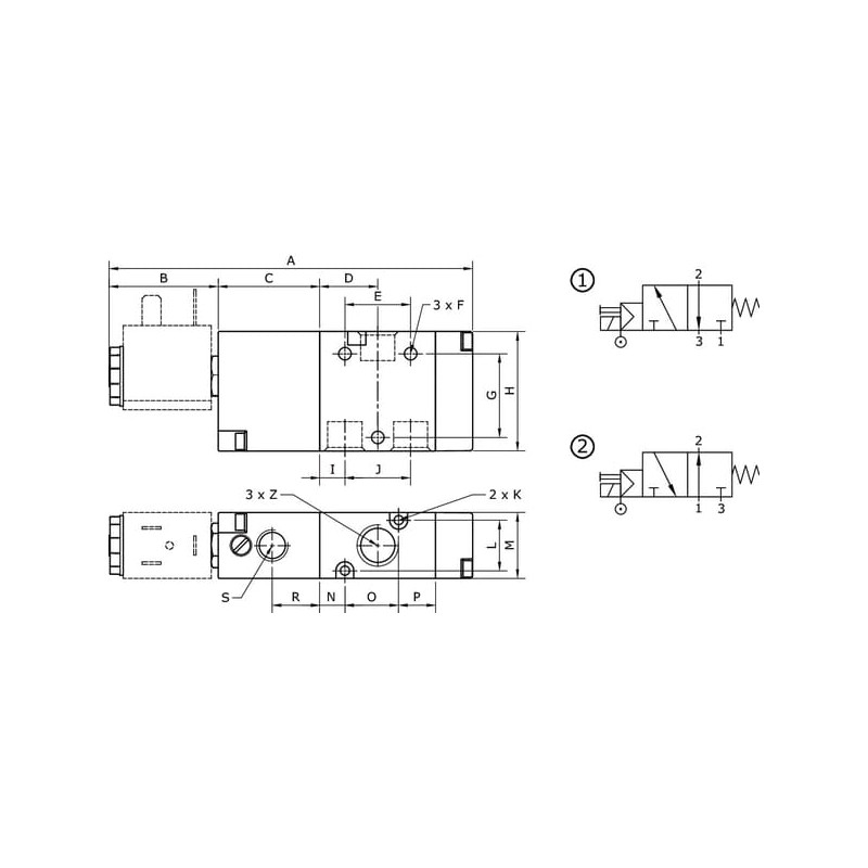 Solenoidinis vožtuvas NC-1/4" 3/2 eigos SOV32MS14NC