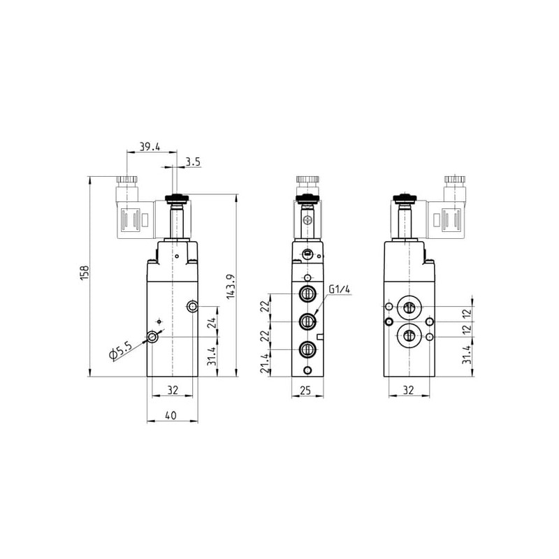 Solenoidinis vožtuvas 3/2 eigų NA34N1502