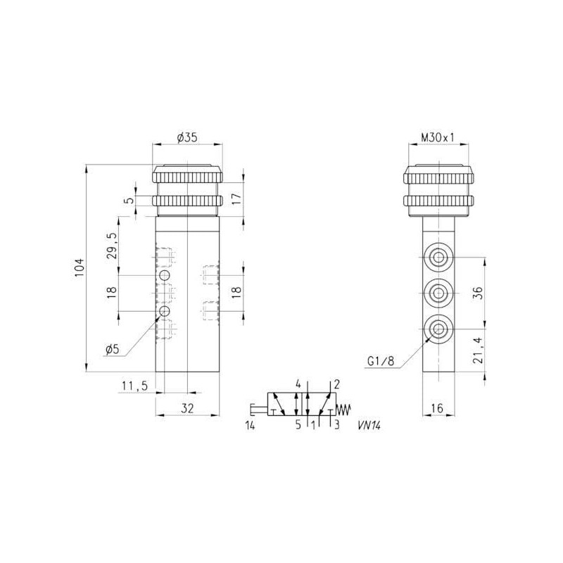 Vožtuvas, 5/2 mygtukas 358896