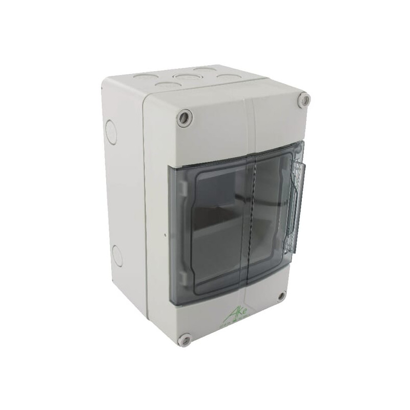 Išsamus aprašymas Įrengimo spintelė AKe IP54 tiekiama su dūmų spalvos dangteliu, kurį galima lengvai pakeisti iš dešinės į kairę pusę.