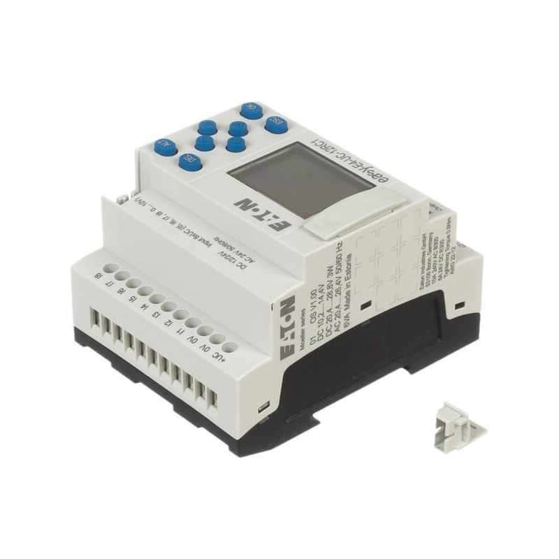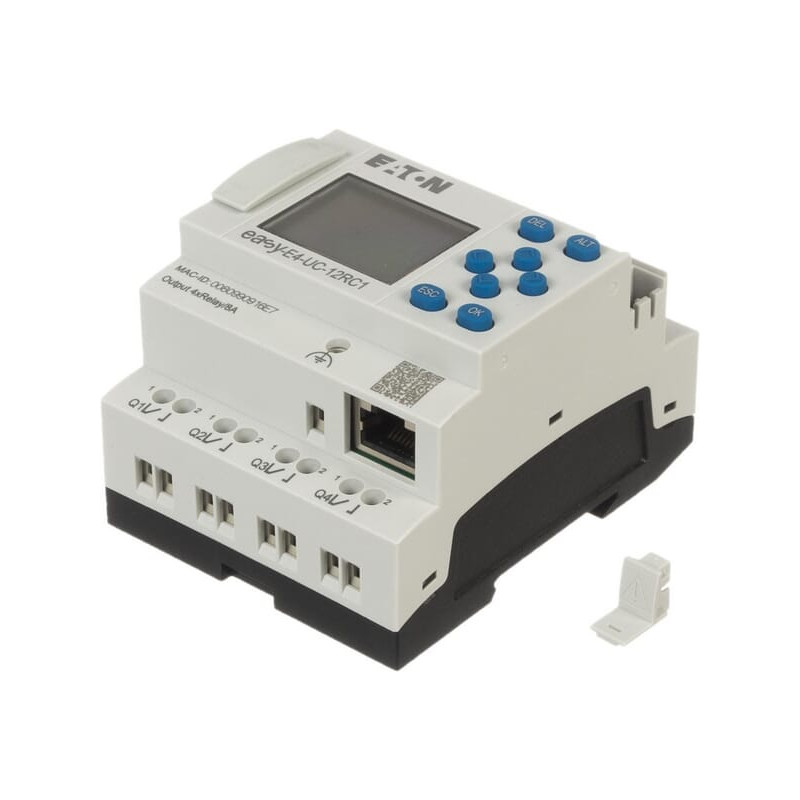 Produkto informacijaDaugiausia 11 vietinių išplėtimo modulių vienam baziniam įrenginiui. 188 galimi įėjimai ir išėjimai vienoje „easyE4“ sistemoje. Platus įtampos diapazonas (nuolatinė, kintamoji ir UC). Integruota Ethernet sąsaja, užtikrinanti platų ryšio galimybių pasirinkimą. Programavimo aplinka su 4 programavimo kalbomis (ST, FBD, LD, EDP). Su LCD ekranu. 3 spalvų foninis apšvietimas: balta, raudona ir žalia. Foninis apšvietimas turi 3 pritemdymo nustatymus. Pertraukimo įėjimai. Integruotas Ethernet ir integruotas žiniatinklio serveris. Integruotas „microSD“ lizdas.