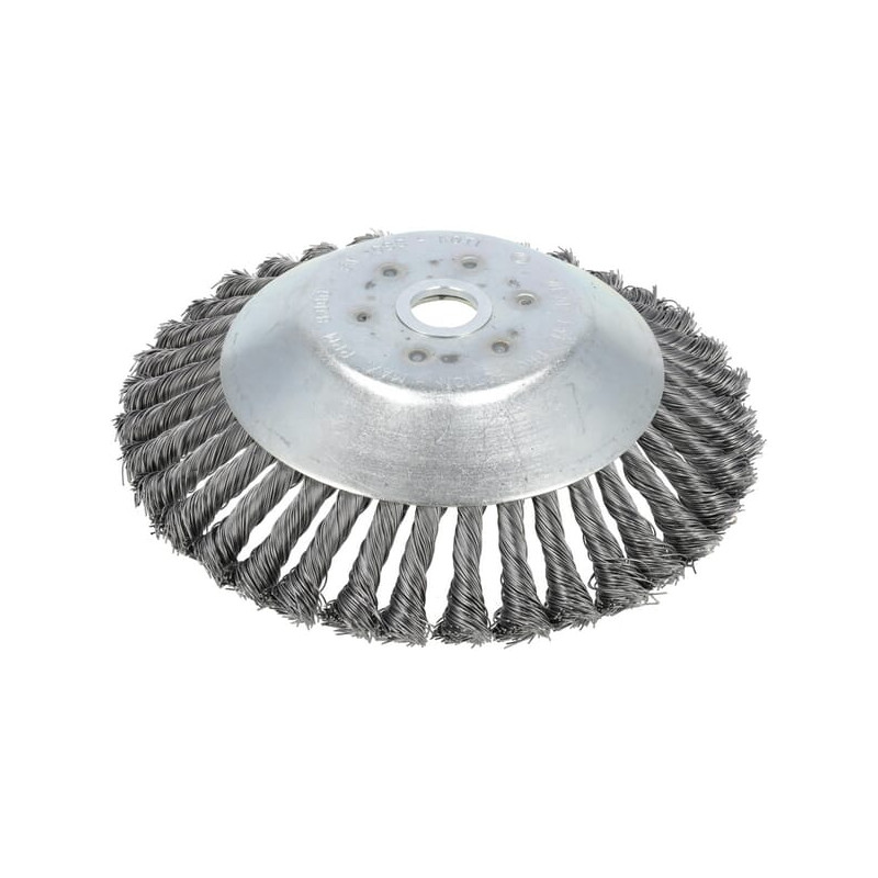 Produkto informacijaTinka sunkiai įveikiamoms piktžolėms šalinti. Naudoti krūmapjovėms, pavyzdžiui, šalinant piktžoles nuo šaligatvių. Naudojamas krūmapjovėms nuo 40cc. Pintinė plieninė viela. Standartiškai tiekiamas su adapteriu, kurio angos Ø20 mm.